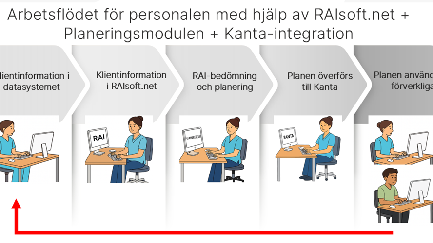 – Integrationens uppgift är att skapa tydlighet, effektivitet och kvalitet i vårdplaneringen, när ett arbetsmoment omfattar både genomförandet av RAI‑bedömningen och dokumentationen av planen. Detta sparar yrkespersonens tid, gör informationen i RAI‑bedömningen till en effektiv del av planeringsinformationen och säkerställer att uppgifterna är korrekta och följer kraven. En enhetlig informationshantering förbättrar också kvalitet och säkerhet.